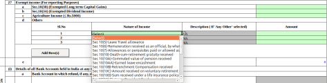 - It has also specified list of Nature of Income to be selected from Allowance exempt under section 10