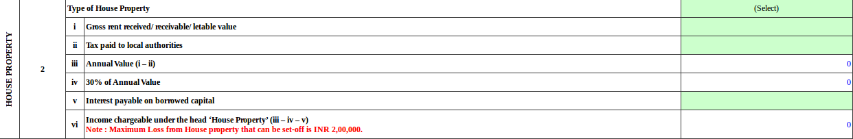 2. Income from One House Property – Item No. 2: Earlier net income from house property was required to be furnished, now details under below heads are required: