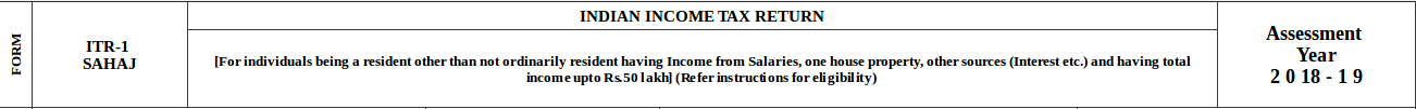 Income Tax Return Form – 1 (Sahaj) is applicable to only Resident Individuals having Incomes from Salaries or Pension, One House property, Other sources and having total income upto Rs. 50 lakhs. The new ITR-1 form is not applicable to Non-residents and Residents but not ordinarily resident (RNOR).