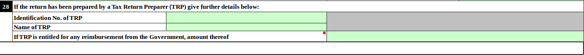 12. New Insertion – Item No. 28 Only if the return has been prepared by a Tax Return Preparer (TRP) below details will be required to be filled by TRP