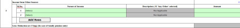 - In case the nature of other sources income is selected as Family pension then a new row has been inserted as :