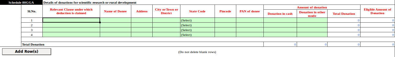 Details of donations for scientific research or rural development is newly inserted in ITR 1 Sahaj