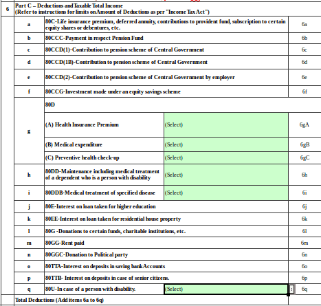 Headings of Various deduction sections from 80C to 80U has been clearly specified.