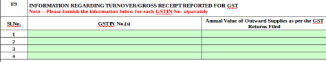 - Annual Value of Outward Supplies as per the GST Returns Filed