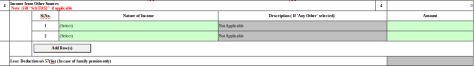 - In case the nature of other sources income is selected as Family pension then a new row has been inserted as :