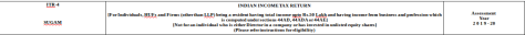 The major changes in ITR – 4 applicable for the Assessment year 2019-20; Financial year 2018-19 are as below: