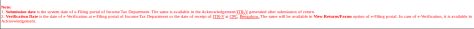 Submission Date is available in the ITR-V / Acknowledgement generated after submission of return. Verification date is the date of Receipt of ITR -V at CPC. In case of e-verification, it is available in the Acknowledgement.
