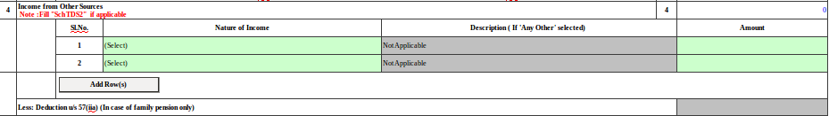 - In case the nature of other sources income is selected as Family pension then a new row has been inserted as :