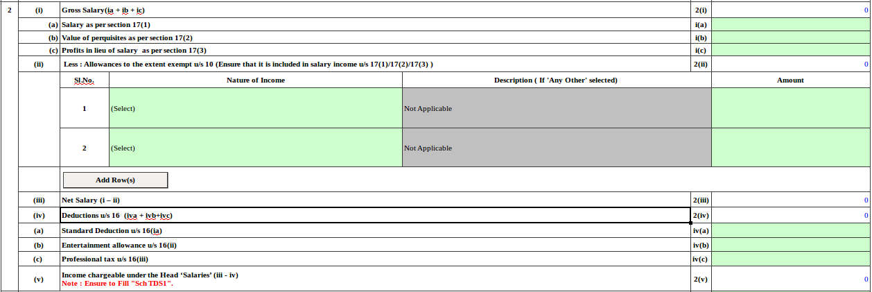 In the new form salary income disclosure is required as per Form 16 under below heads: