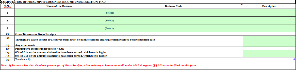 - Business Code – 09005 – General commission agents, commodity brokers and auctioneers is not available in new ITR-4 Sugam.