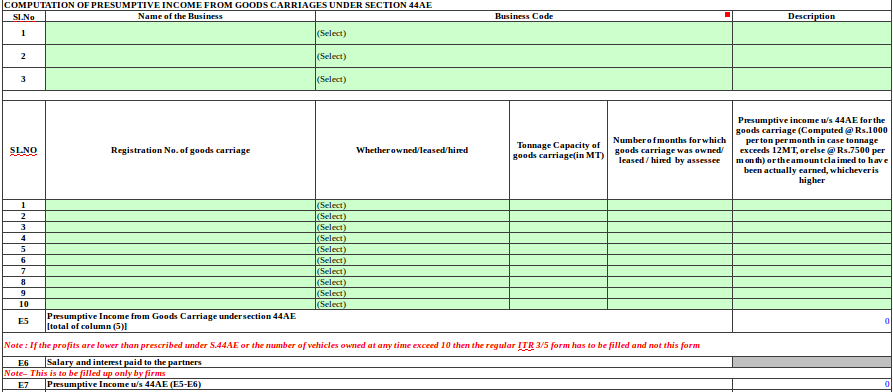 - Presumptive income u/s 44AE for the goods carriage (Computed @ Rs.1000 per ton per month in case tonnage exceeds 12MT, or else @ Rs.7500 per month) or the amount claimed to have been actually earned, whichever is higher