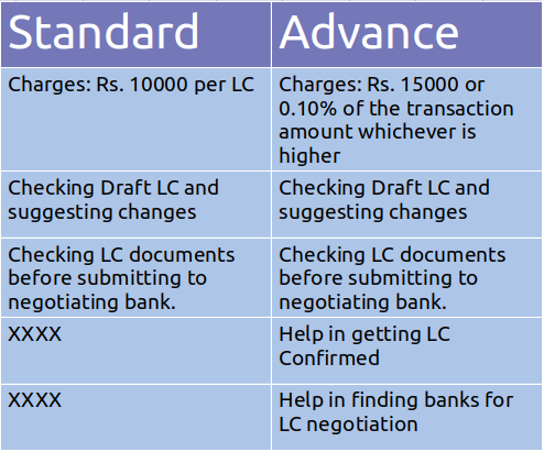 - LC Negotiations: We help exporters getting LC negotiated at competitive rates.